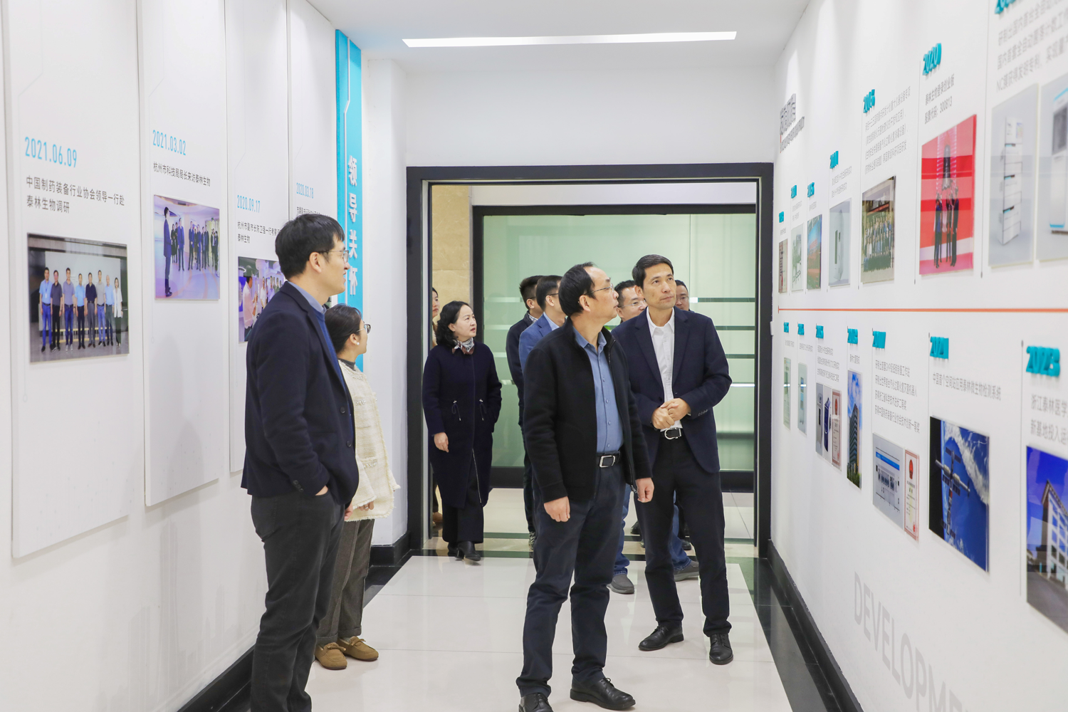 簽約結束后,在泰林生命科學副總經理徐磊的陪同下,南方水中心張東總經理一行參觀了泰林生命科學與泰林醫學工程兩個園區,詳細了解泰林水生態(微生物、寄生蟲和藻類)檢測整體解決方案創新與探索,并就水生態檢測領域的研發與場景化應用進行了深入交流,同時對泰林在制藥、新材料、環保、半導體等領域的應用與布局表示贊賞。