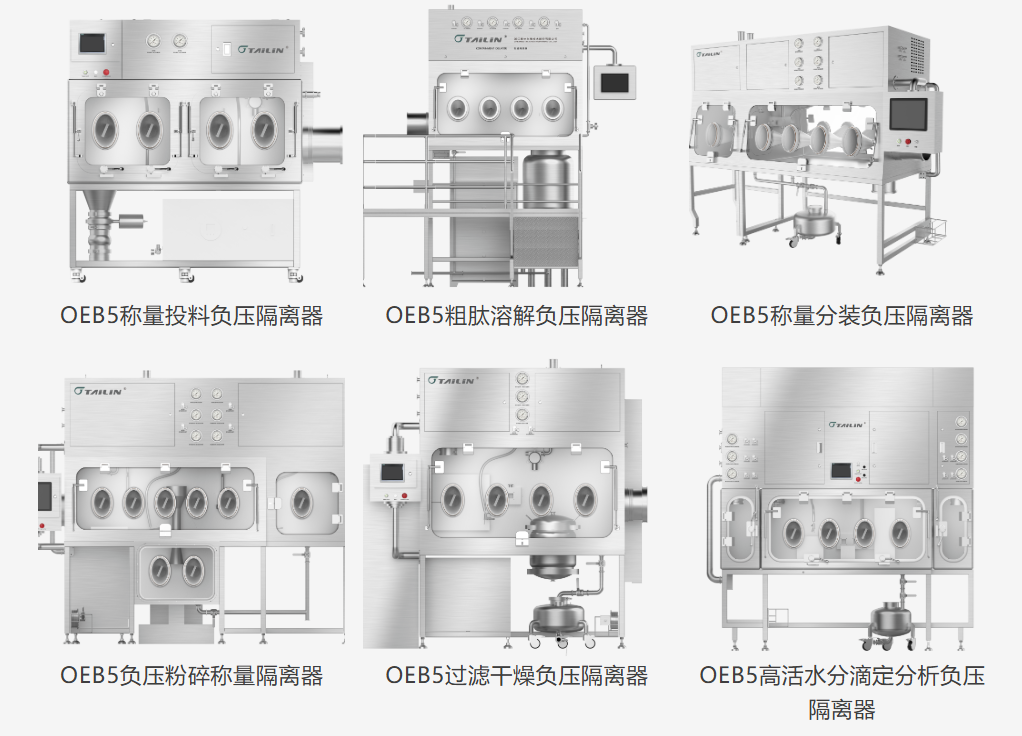 泰林生物基于原料藥生產工藝及法規中對其廠房與設施的系列要求,提供高活性原料藥(API)生產解決方案。泰林系列負壓隔離器采用物理屏障方式對關鍵操作過程進行負壓隔離防護,有效控制有害物質外溢,起到保護室內人員及環境的作用,同時提供流暢、規范和有效操作控制流程,還可根據客戶的不同工藝流程提供非標定制系統化集成解決方案,配備國內領先的隔離器技術團隊為客戶提供包含設計、生產、驗證、售后一站式服務,為客戶構建和和提升原料藥生產能力賦能。
