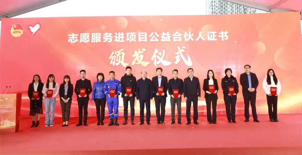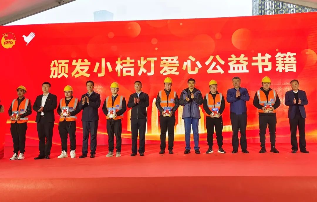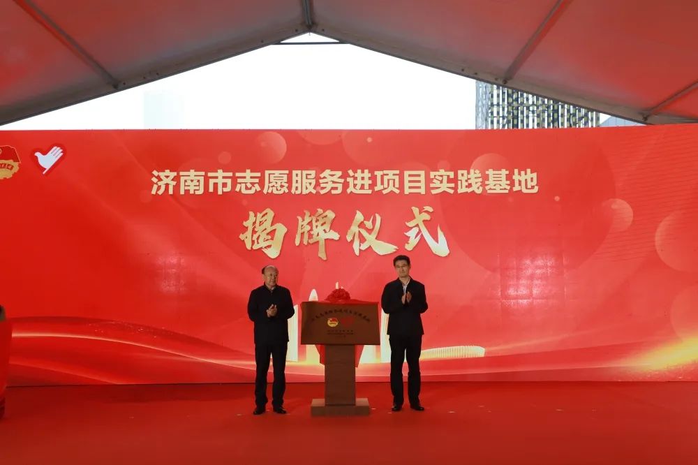 活動中,賈文、孫文國共同為濟南市志愿服務進項目實踐基地揭牌;出席活動領(lǐng)導同志共同為工友代表發(fā)放慰問品與“小桔燈”愛心公益書籍,向參加活動志愿者組織代表頒發(fā)公益合伙人證書并向各青年志愿服務隊授旗。